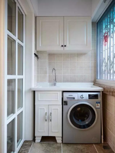 阳台洗衣房比较常见与小户型居室,由于小户型居室一般厨房和卫生间都十分小,再放上洗衣机空间会十分拥堵。如果恰好阳台与厨房或卫生间相连,无妨考虑将洗衣房搬到阳台。还有一种情况是大户型里有双阳台,此刻也能够考虑将其间的一个阳台改形成洗衣房。